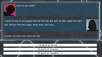 Just released a new update for Null Event, adding in a sixth ending, that concludes Milennia's storyline, with some more corruption-themed content. To access it, you'll need to choose the Supernatural...
